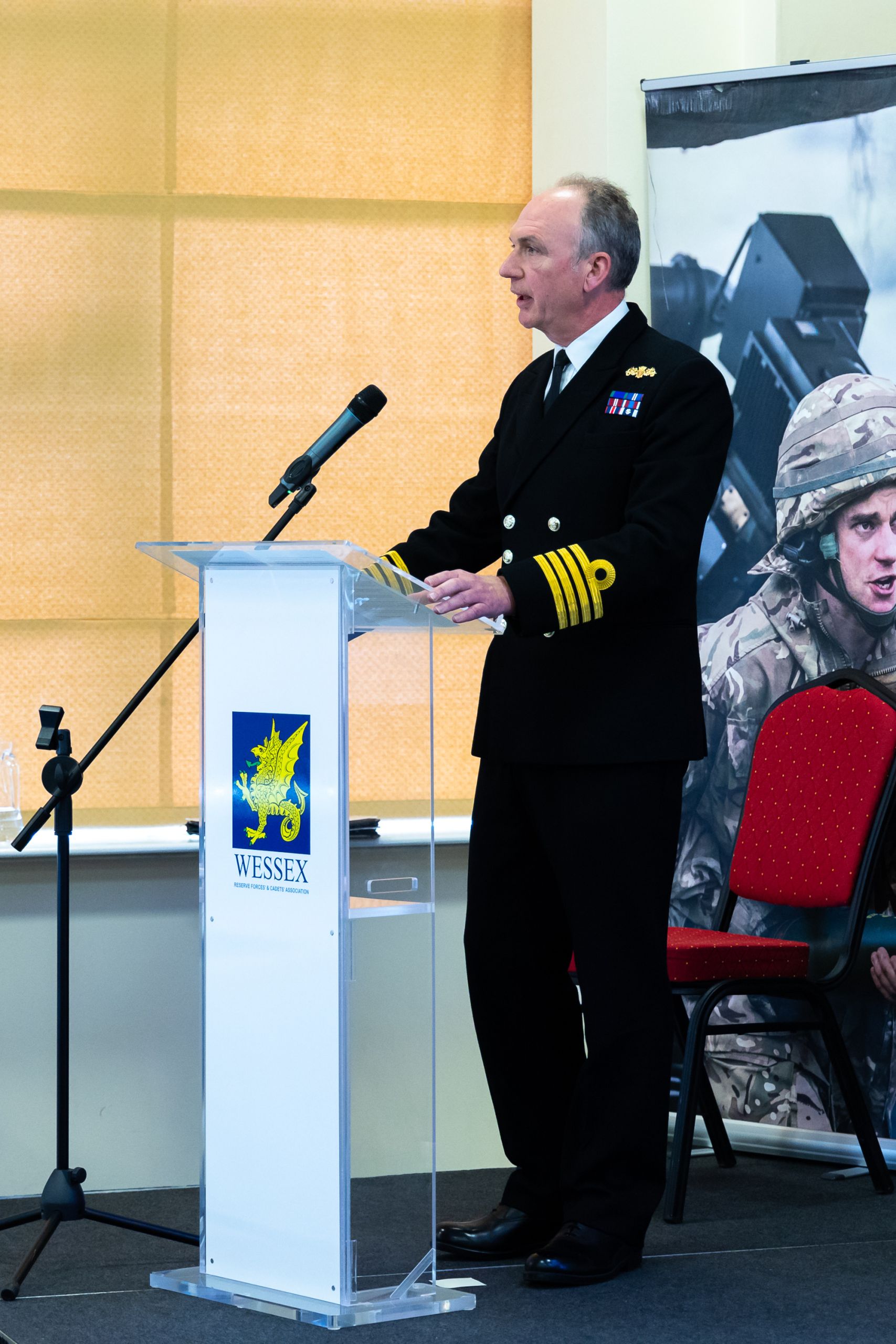 As well as the formal proceedings of the AGM, the event saw a range of prominent speakers addressing key topics related to reserve recruitment and strategy. Captain Carl Necker RN, representing the Royal Navy’s Royal Naval Reserve Units (South), discussed the evolving needs and strategies for maritime reserve recruitment. His presentation emphasised the importance of enhancing recruitment efforts to meet the demands of modern maritime operations.